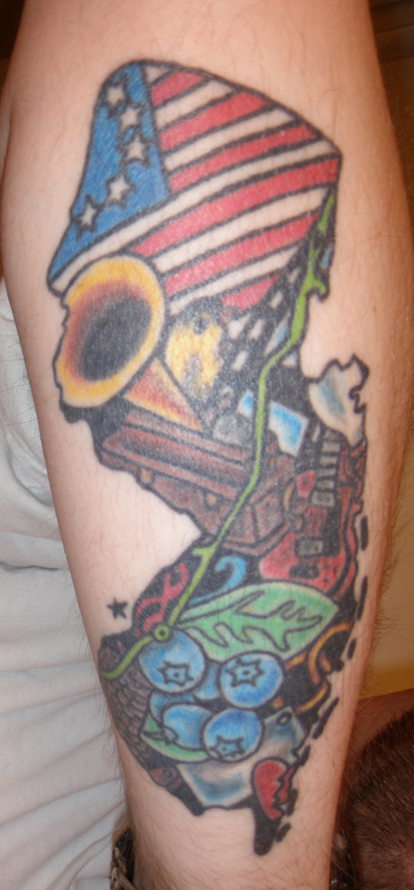 I’ve logged so many miles on the NJ Turnpike that, if you check out the details of the many included in my New Jersey tattoo, there is an outline of the Turnpike (the green strip going diagonally up from left to right). This was, in fact the impetus for the design. I’ve earned that detail, like a badge. A medal in fact, since there were times, as the last one of my family “on the outside” I called myself The Last Man Standing.